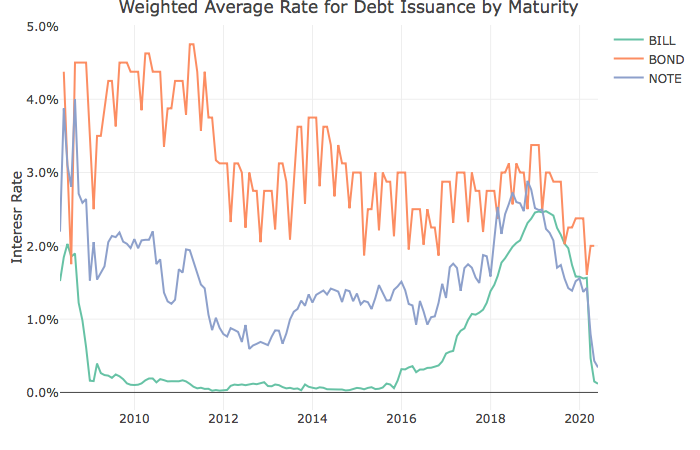 In response to Covid 19, The Federal Reserve has committed to unlimited Quantitative Easing, to absorb all the debt being issued. When Primary Dealers know they can buy a bond and sell it to the Fed, they are willing to accept a much lower rate of return because the risk to the bond holder has collapsed to essentially zero.